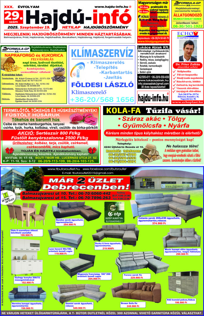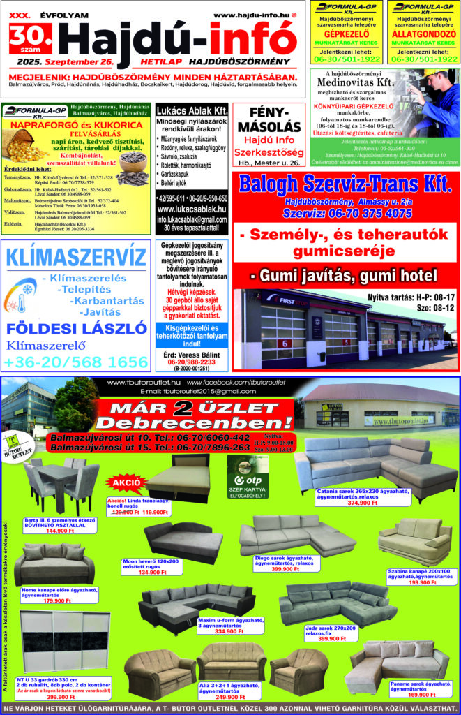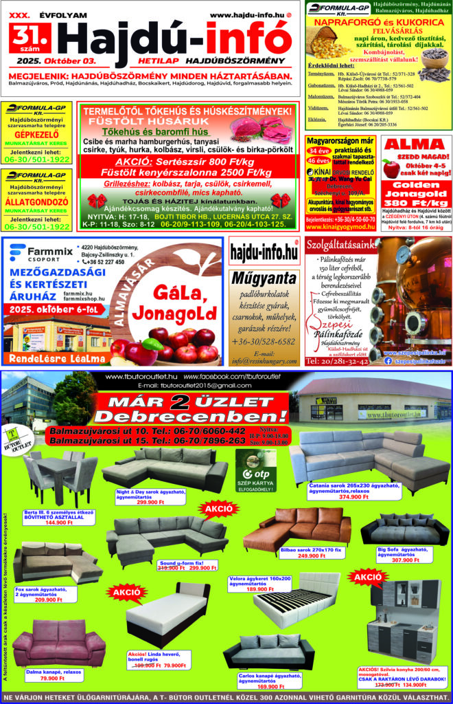 A Hajdú-infó heti rendszerességgel jelenik meg nyomtatott formában, melyet terjesztői hálózattal juttatunk ki a postaládákba. Amennyiben nem kapta meg a kiadványunkat, jelezze elérhetőségeinken.